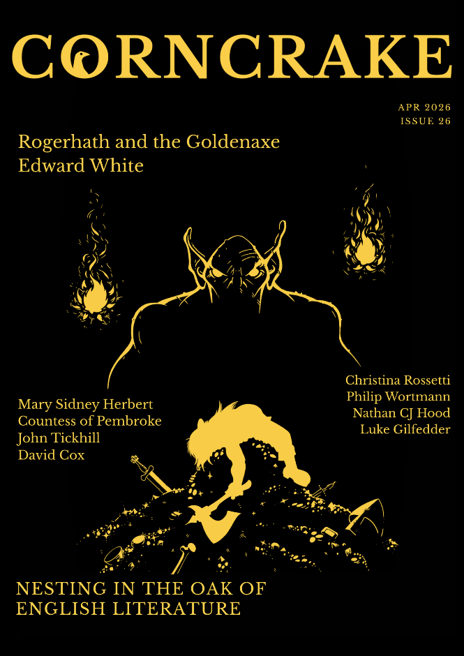With the arrival of Spring comes a fresh instalment of the Corncrake. Bursting with vitality, this issue offers the scintillating first part of Rogerhath & The Golden Axe by celebrated author Edward White a.k.a. Emperor Penguin. A tale inspired by English folklore and faerie tale, it delves into the